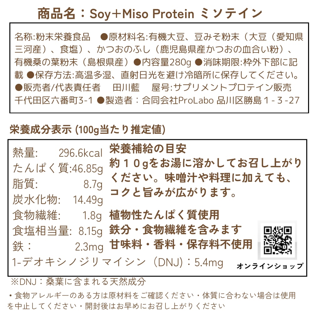 無添加 Soy+Miso Protein 和風プロテイン 「Misotein」ミソテイン